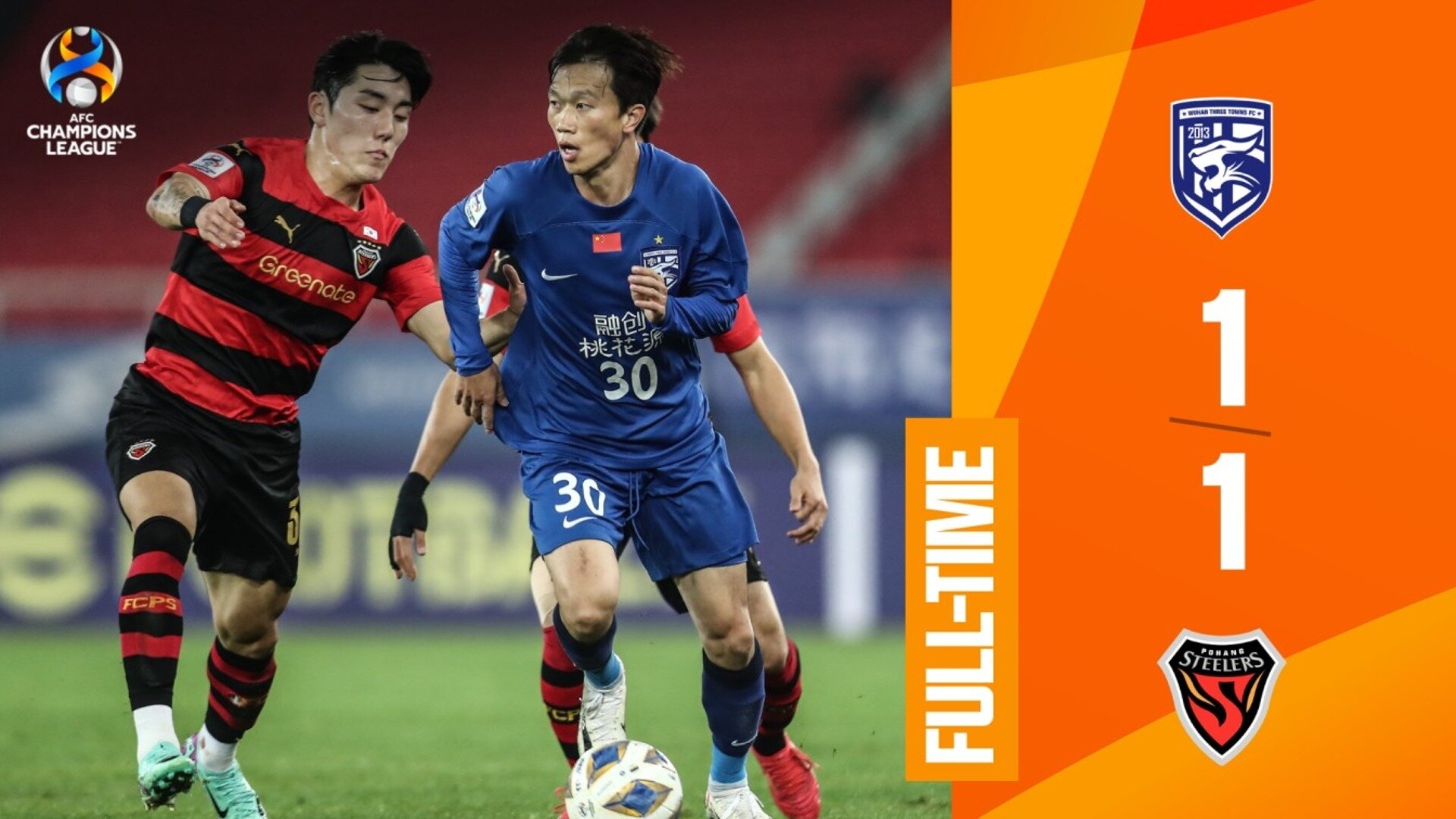 ووهان - تعادل نادي بوهانغ ستيلرز الكوري الجنوبي خارج ملعبه مع ووهان ثري تاونز الصيني 1-1 يوم الأربعاء على ستاد مركز ووهان الرياضي في ووهان، ضمن الجولة السادسة والأخيرة من منافسات المجموعة العاشرة في دوري أبطال آسيا 2023-2024.
