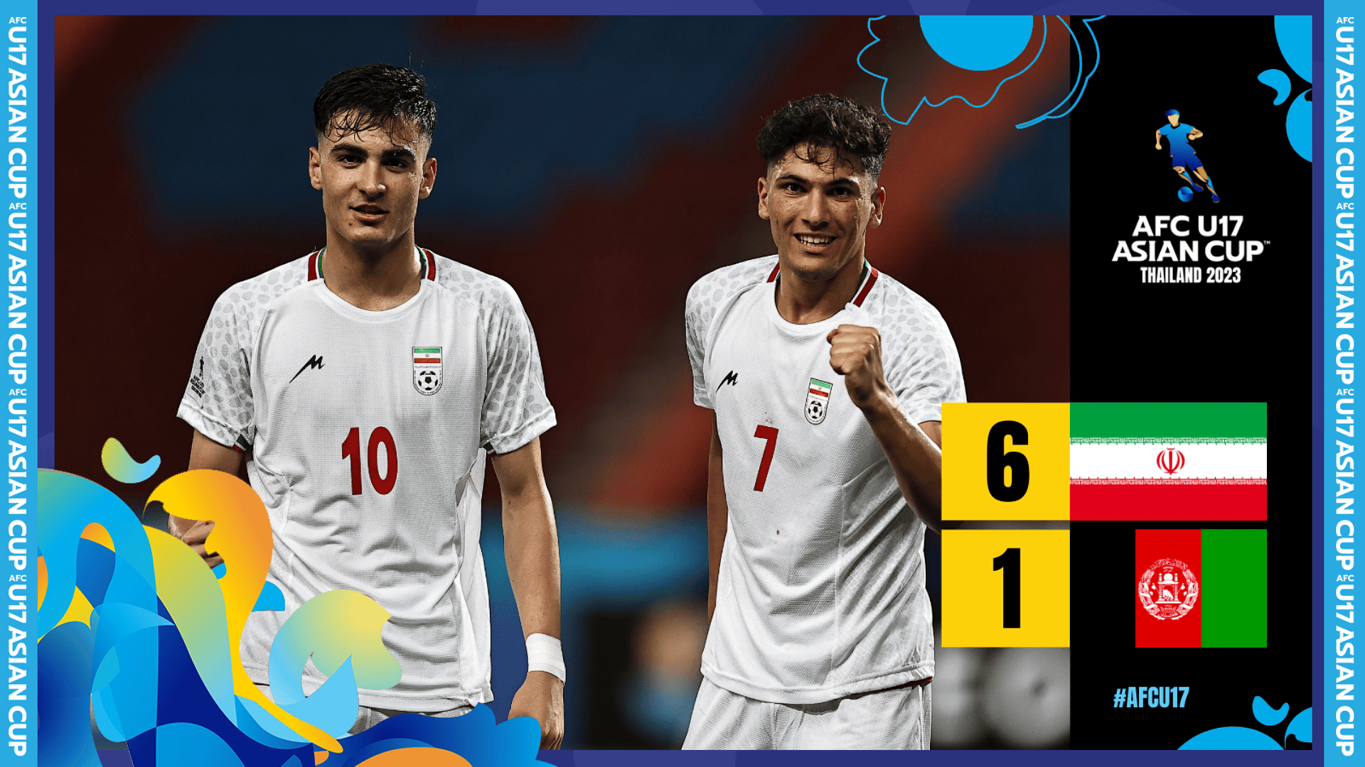 بانكوك - فاز منتخب إيران على أفغانستان بنتيجة كبيرة بلغت 6-1 يوم الجمعة على ستاد راجامانغالا في بانكوك، ضمن الجولة الأولى من منافسات المجموعة الثانية في كأس آسيا للناشئين تحت 17 عاماً 2023 في تايلاند.
