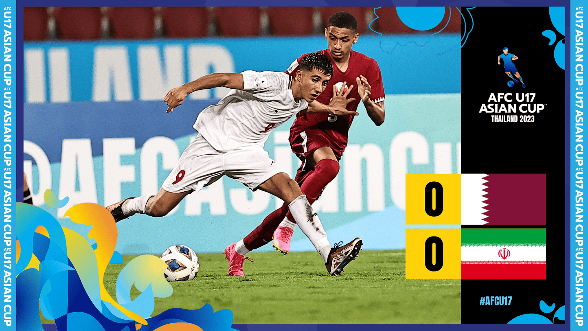بانكوك - تعادل منتخب قطر مع إيران 0-0 يوم الاثنين على ستاد راجامانغالا في بانكوك، ضمن الجولة الثانية من منافسات المجموعة الثانية في كأس آسيا للناشئين تحت 17 عاماً 2023 في تايلاند.