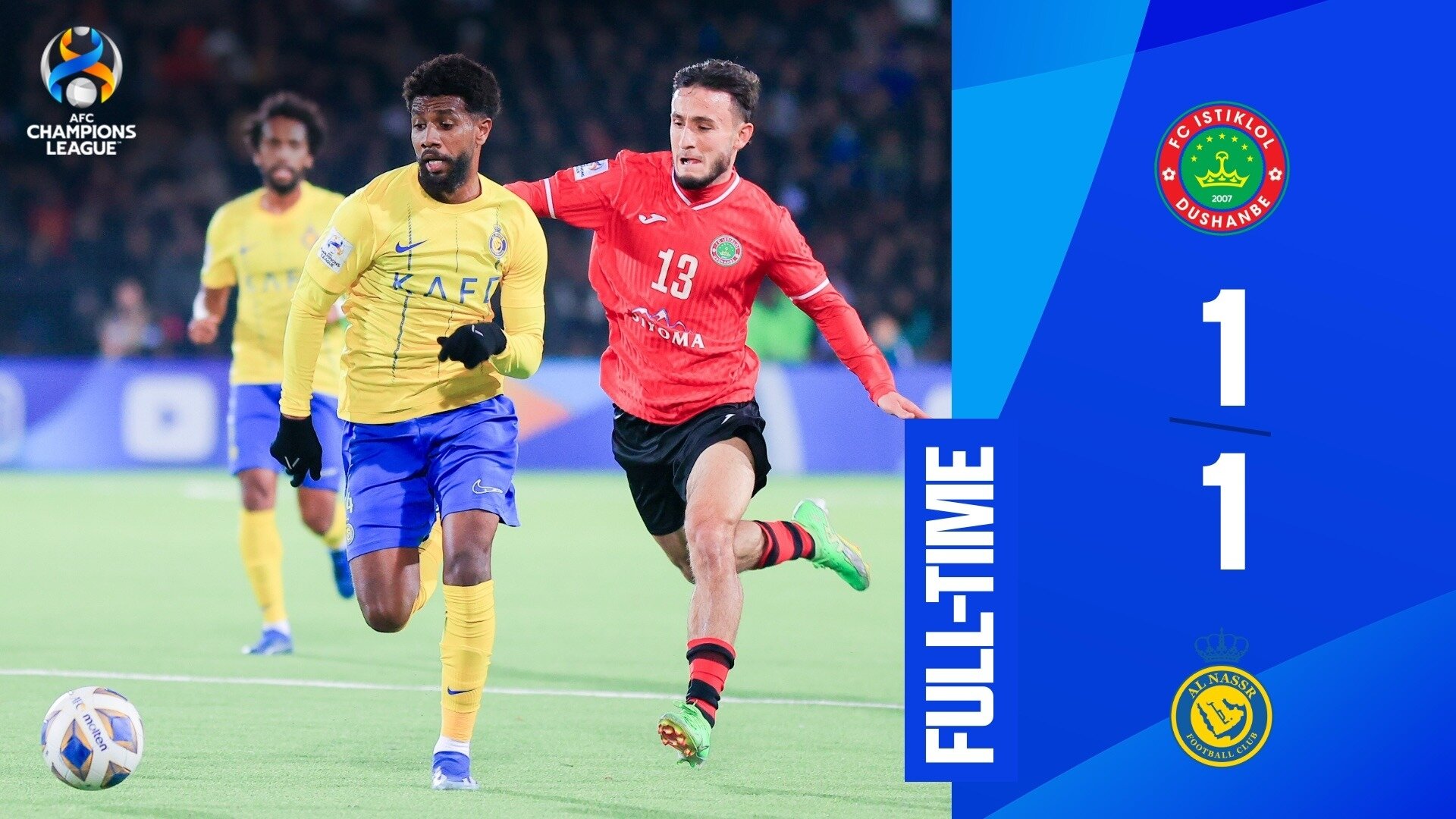 Dushanbe: Abdulrahman Ghareeb scored five minutes into the second half to earn Al Nassr a 1-1 draw with FC Istiklol in Dushanbe on Tuesday as the Saudi Pro League side ended their Group E campaign in the AFC Champions League™ 2023-24 unbeaten.