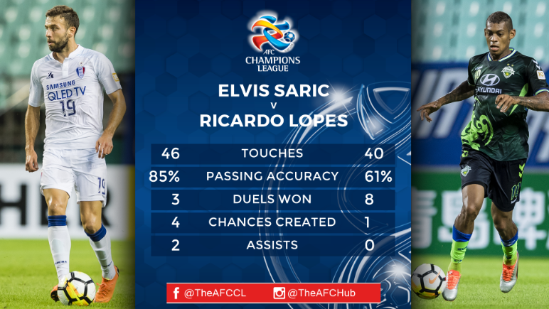 An initially tight first leg remained scoreless until the final 15 minutes, when Montenegrin striker Dejan Damjanovic netted twice before Han Eui-kwon also got on the scoresheet to leave the 2006 and 2016 AFC Champions League winners staring elimination in the face.