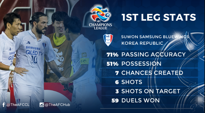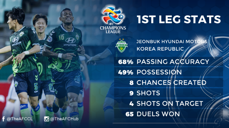 Jeonbuk now need to score at least three at Suwon World Cup Stadium to have any chance of remaining in the competition, while the hosts will know a goal would all but kill the tie off as they look to secure their second appearance in the semi-finals.