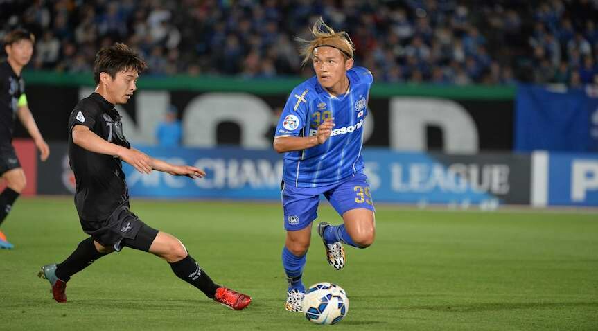 Usami, who had a couple of seasons in Germany with Bayern Munich and then 1899 Hoffenheim, put Gamba 1-0 up with 29 minutes at the Kashima Soccer Stadium played before the 23-year-old (pictured during Gamba’s ACL 15 group stage match against Seongnam) took his tally 2015 J.League tally to 18 when he successfully converted form the penalty spot ten minutes later.