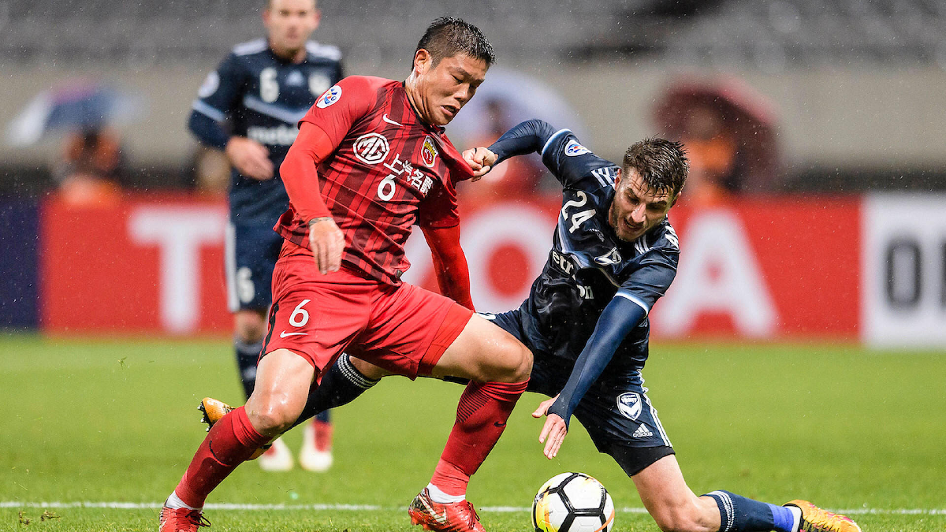 But Shanghai’s response was quick and Fredy Guarin tied the score at 2-2 five minutes later. Andrew Redmayne fell to the floor after punching clear Bai Jiajun’s cross and Guarin was perfectly positioned on the edge of the box to volley into the net.