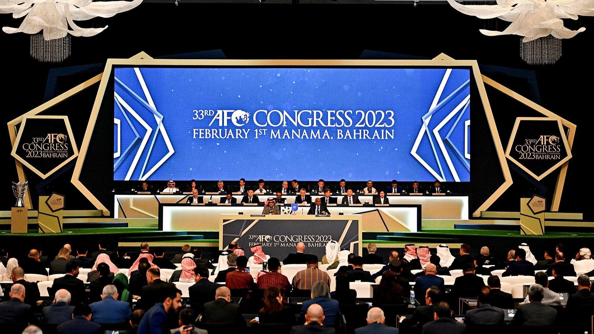 Wed, 15 May, 2024 Bangkok: Australia and Uzbekistan have been confirmed as the hosts of the 2026 and 2029 editions of the AFC Women’s Asian Cup™ respectively after the AFC Executive Committee today ratified the AFC Women’s Football Committee’s recommendations at its third meeting held in Bangkok, Thailand, on the eve of the 34th AFC Congress. Wed, 15 May, 2024 Bangkok: The AFC Executive Committee today convened in Bangkok, Thailand, and reflected on the resounding success of the AFC Asian Cup Qatar 2023™, expressing confidence that the breakthrough achievements of the Continental showpiece marked a new era of progress for Asian football. Fri, 10 May, 2024 Kuala Lumpur: The Asian Football Confederation (AFC) Member Associations (MAs) will elect two new members to the AFC Executive Committee for the remainder of the 2023 to 2027 term when it convenes at the 34th AFC Congress on Thursday, May 16, in Bangkok, Thailand. Thu, 15 Feb, 2024 Kuala Lumpur: The Asian Football Confederation (AFC) has today confirmed the final list of candidates who will stand for election to the AFC Executive Committee (remaining term 2023-2027) at the 34th AFC Congress in Bangkok, Thailand in May 2024. Fri, 13 Oct, 2023 Kuala Lumpur: The members of the Asian Football Confederation (AFC)’s judicial bodies for the 2023 to 2027 term will be confirmed on Wednesday when the Confederation’s Member Associations (MAs) convene virtually for the AFC Extraordinary Congress 2023. www.the-afc.com/en/about_afc/afc_congress/video/33rd_afc_congress_bahrain_2023_-_highlights.html Wed, 01 Feb, 2023 Manama: The preparations for the AFC Asian Cup Qatar 2023™ gathered momentum today with the appointment of AFC Executive Committee and FIFA Council member Mariano Araneta, Jr. of the Philippines as the Chairperson of the Organising Committee for AFC Asian Cup by the newly elected AFC Executive Committee in its first meeting chaired by the Asian Football Confederation (AFC) President Shaikh Salman bin Ebrahim Al Khalifa, in Manama, Bahrain.Australia and Uzbekistan confirmed as 2026 and 2029 AFC Women’s Asian Cup™ hosts