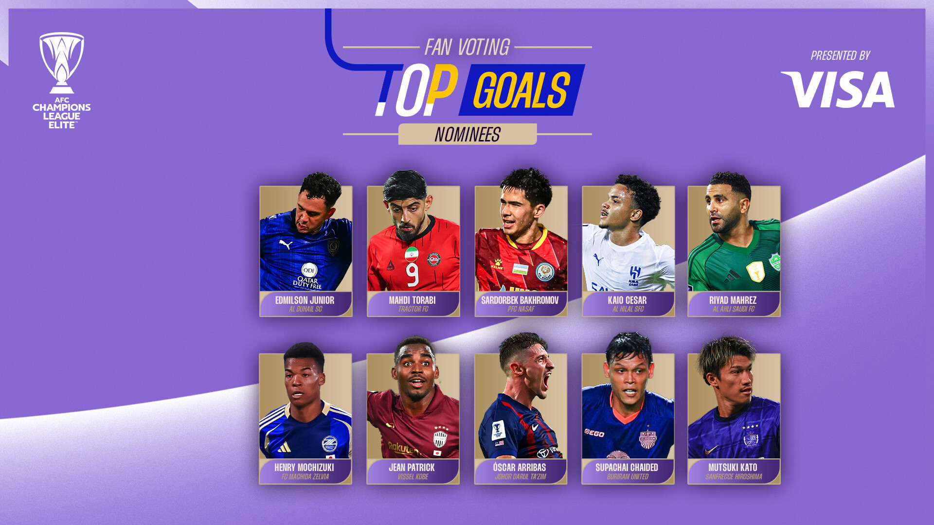 Mon, 10 Nov, 2025 Mon, 10 Nov, 2025 Tue, 11 Nov, 2025 Tue, 11 Nov, 2025 Mon, 10 Nov, 2025#ACLElite – Vote for your Top Goals of Matchday 4 presented by VISA
