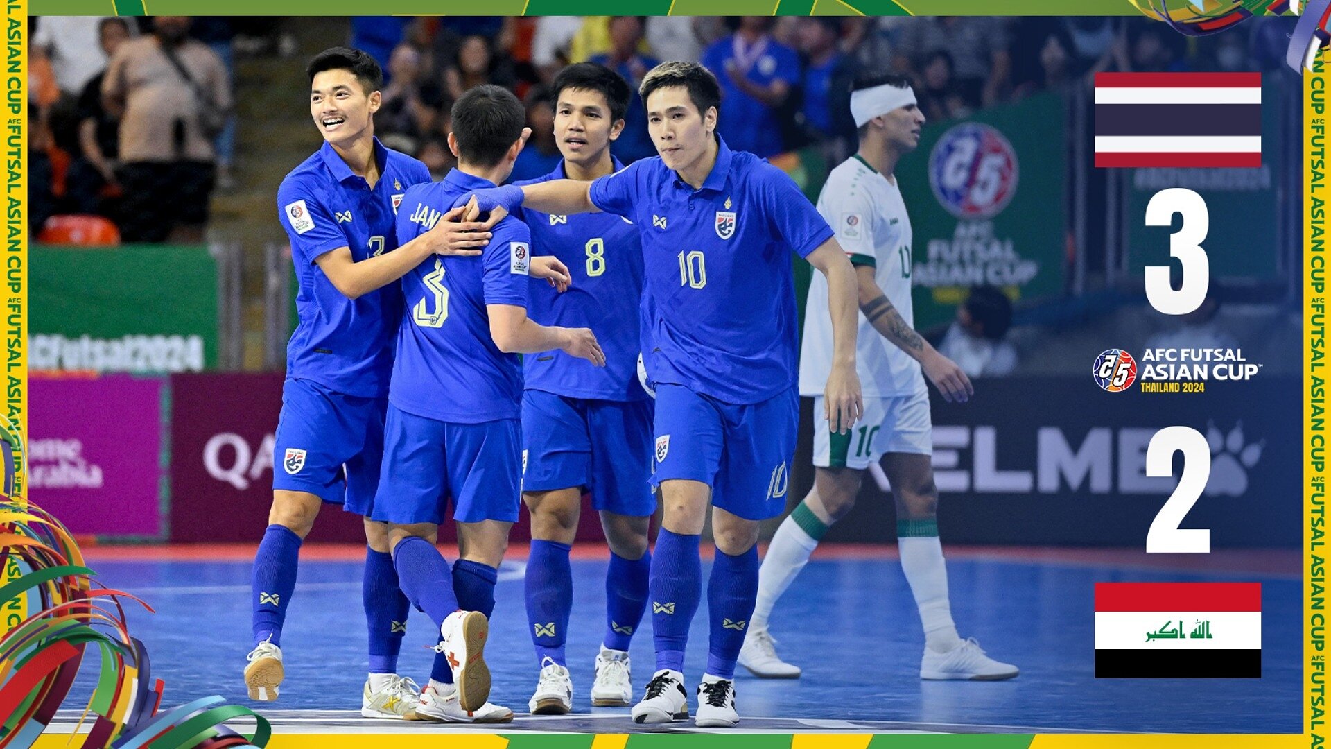 Bangkok: Therdsak Charoenphong’s dramatic late winner saw hosts Thailand defeat Iraq 3-2 on Wednesday to book a semi-final meeting with Tajikistan at AFC Futsal Asian Cup™ Thailand 2024 and qualify for the 2024 FIFA Futsal World Cup, which will take place in Uzbekistan this September.