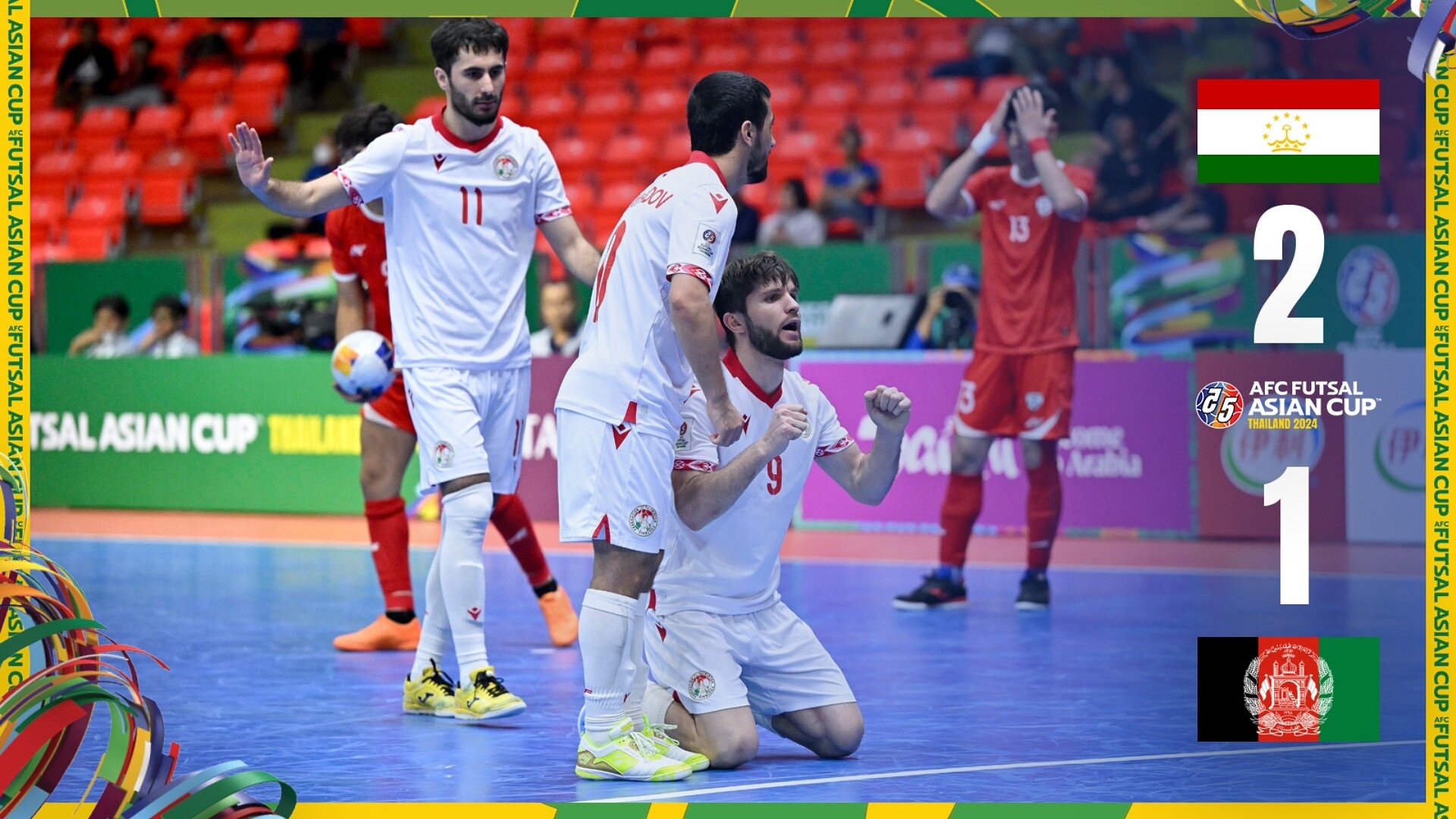 Bangkok: Fayzali Sardorov’s extra-time winner saw Tajikistan edge out Afghanistan 2-1 in Wednesday’s AFC Futsal Asian Cup™ Thailand 2024 quarter-final to secure a place in the semi-finals for the first time and qualification for a maiden FIFA Futsal World Cup.